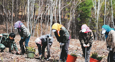 河北省承德市的塞罕坝,曾是一片荒原。如今,这里已变成百万亩人工林海。图为2014年5月,工作人员在塞罕坝机械林场植树。