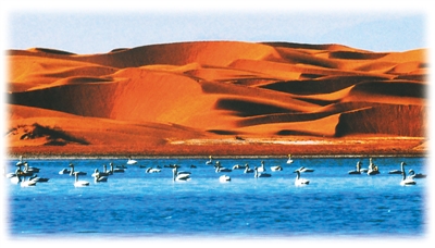 库布其沙漠湖泊。 资料图片
